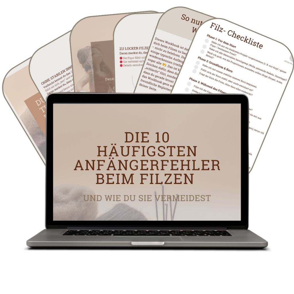 Dieses kostenlose Workbook zeigt dir die 10 häufigsten Anfängerfehler beim Filzen – und wie du ihnen sanft begegnest.